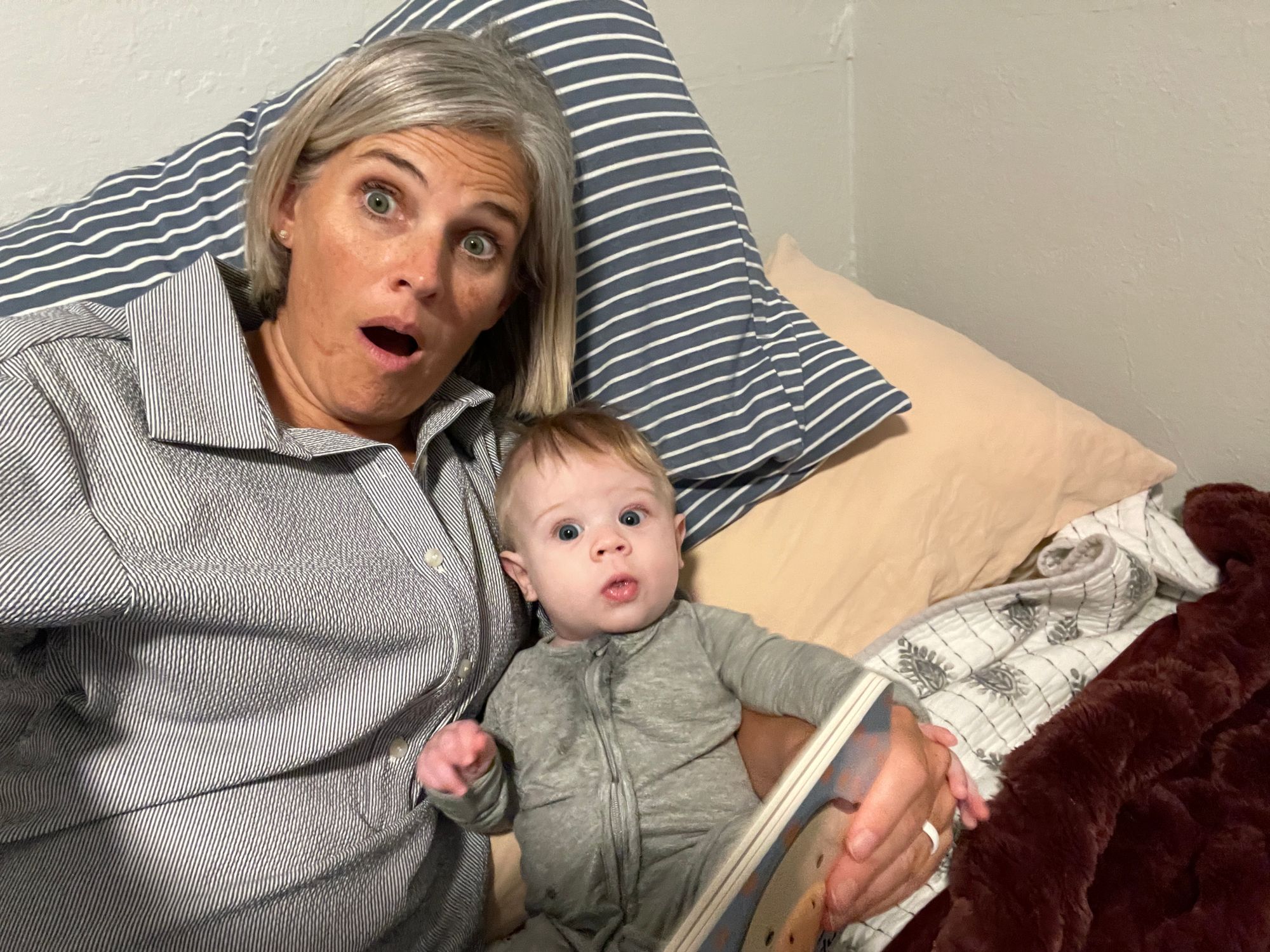 I remember as a mom, every once and a while I would look at my child and think...... "Okay, you definently grew last night!" Benson was laying on Sydney's chest and he was making eyes at me. I couldn't believe how old he looked! I snapped this photo. Sydney couldn't believe it either!