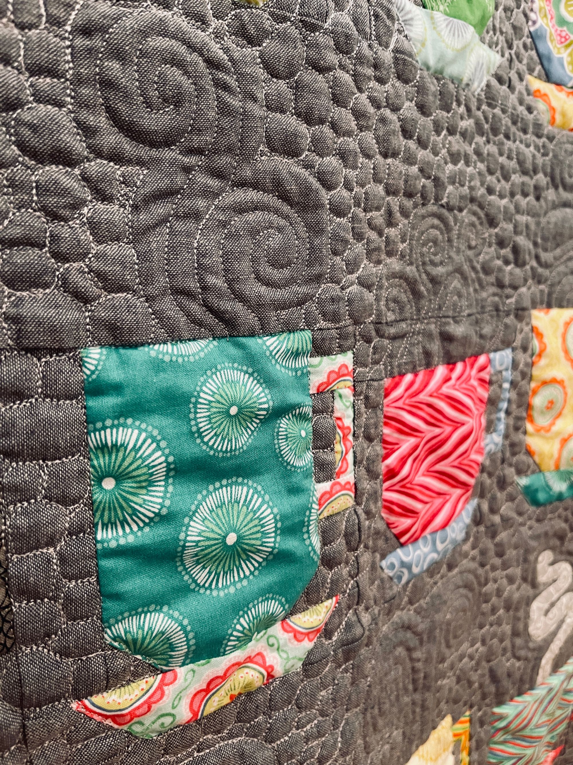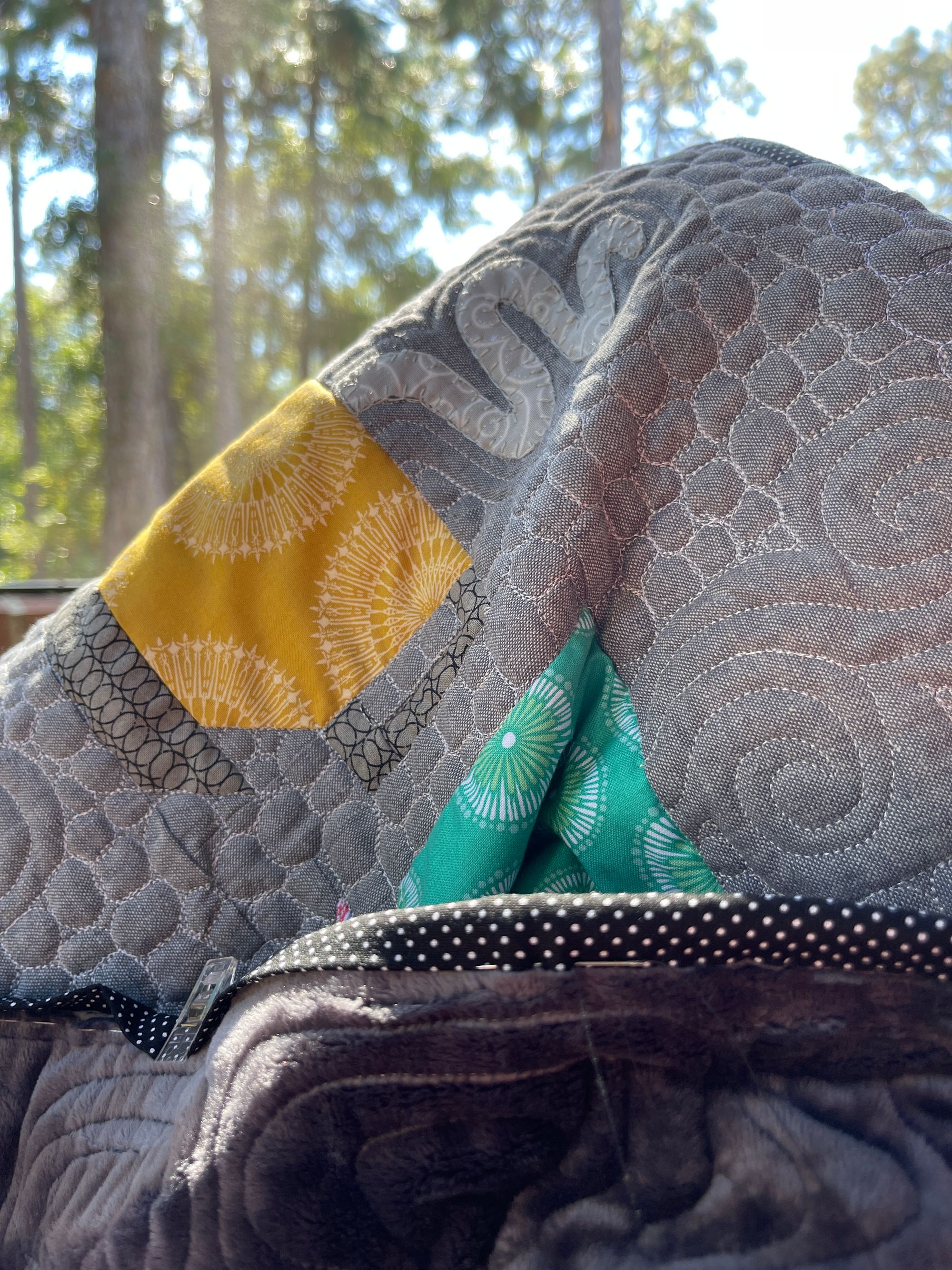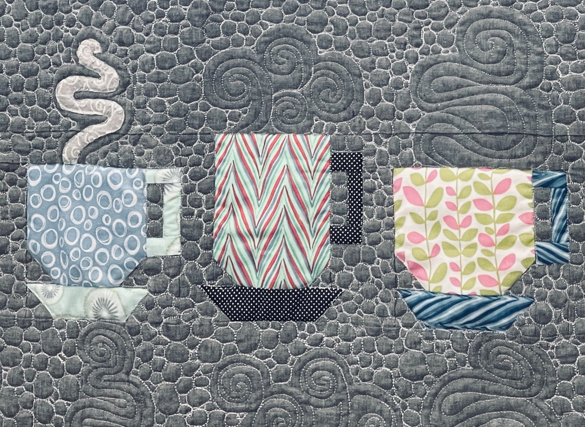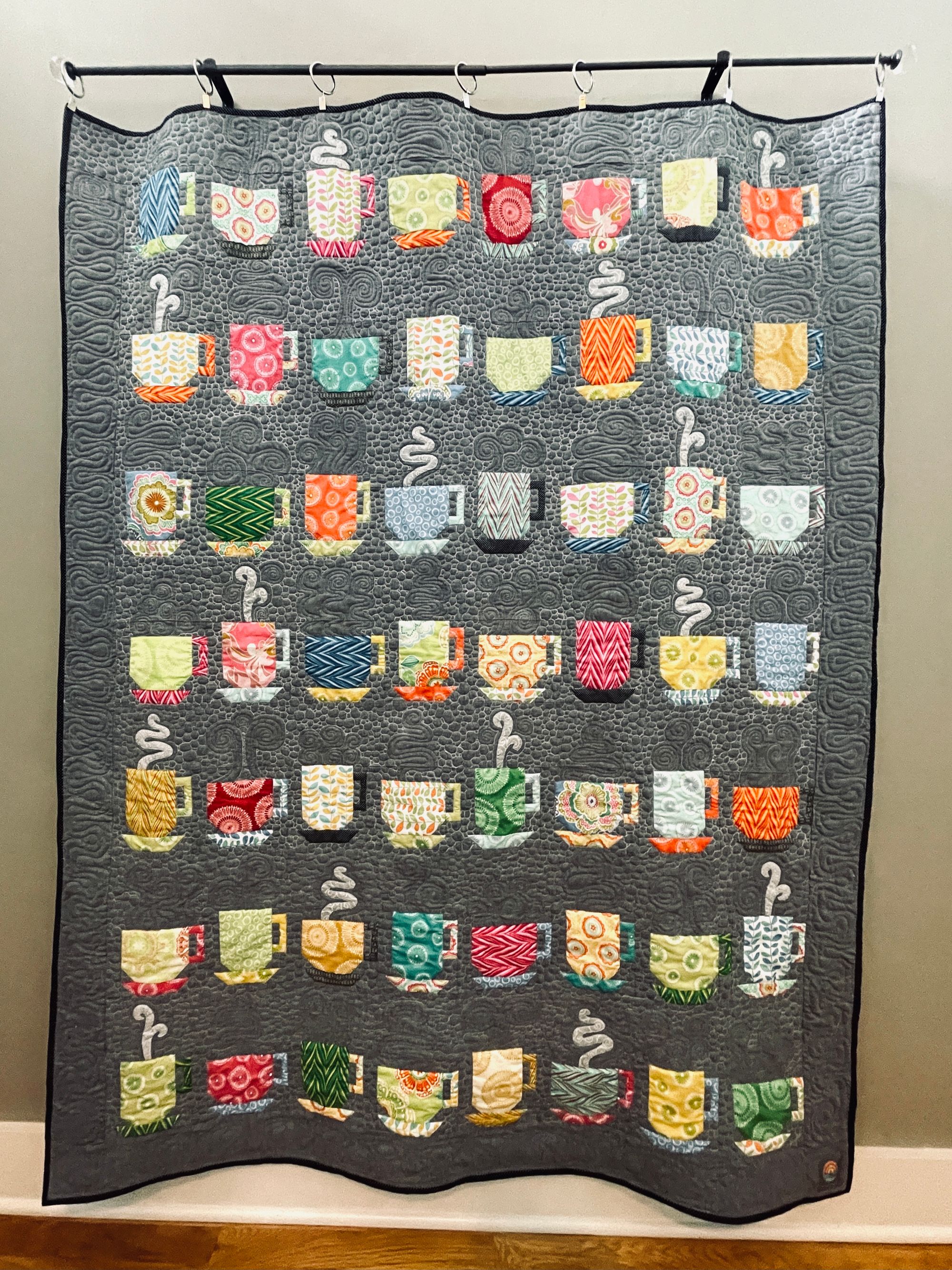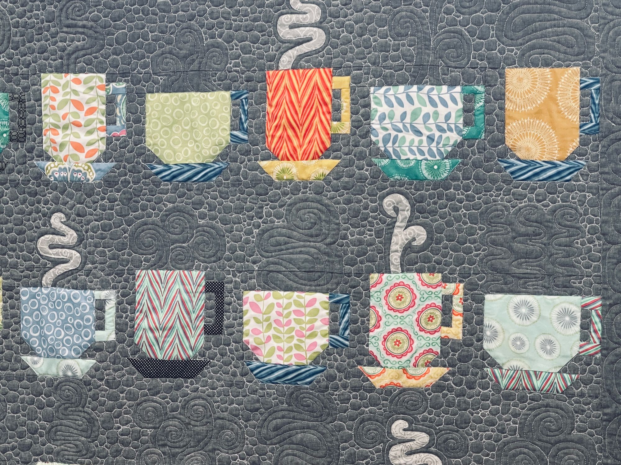 I'm working on finishing my Tea Cup quilt. Benson comes down to check out my progress :). My last evening in St. Louis I stayed up until 1 am and finished it!