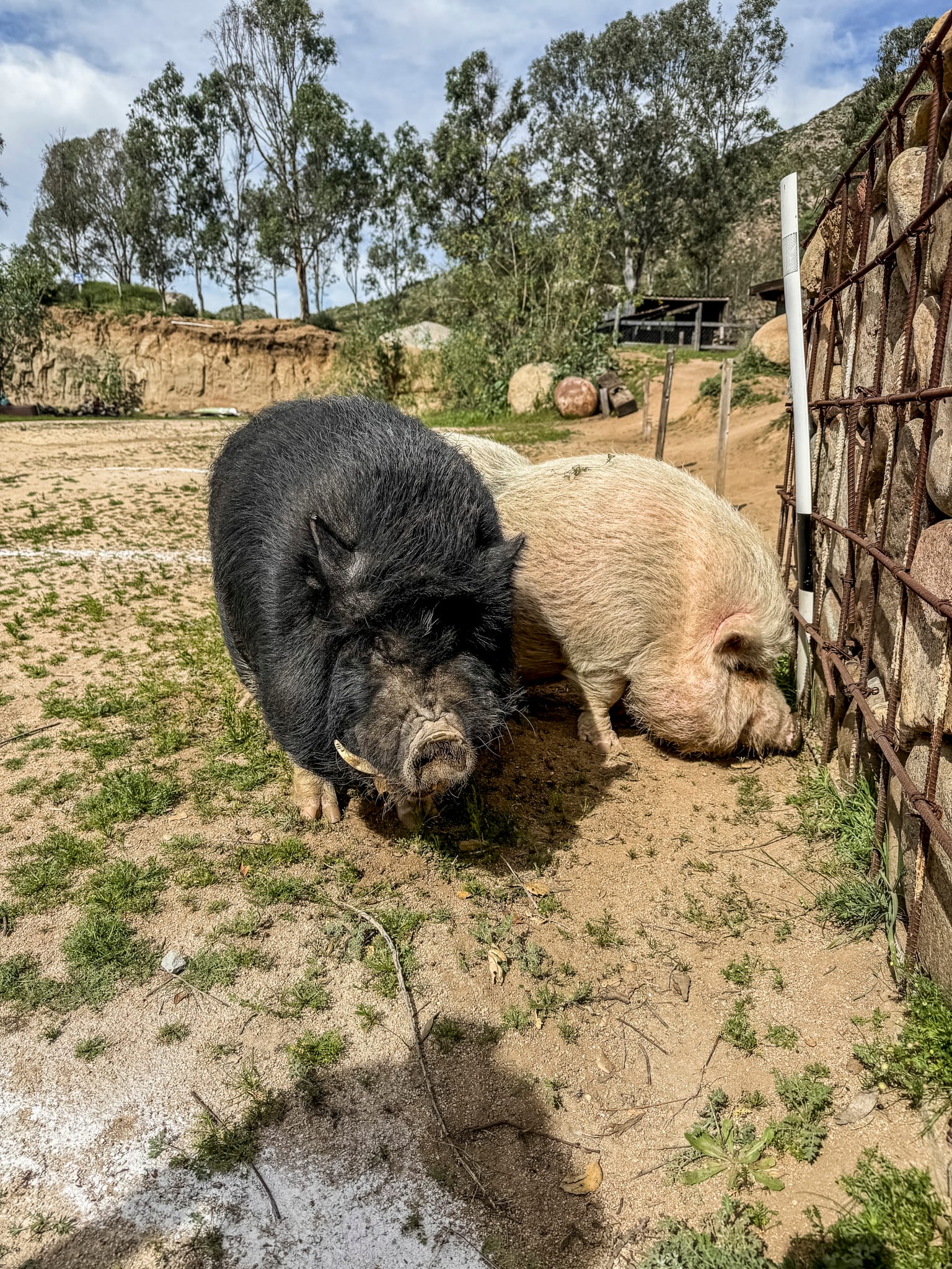 At one point they had to walk through this gate and these enormous pigs were there to great them. When she sent the picture in text I said "lunch?". We laughed.