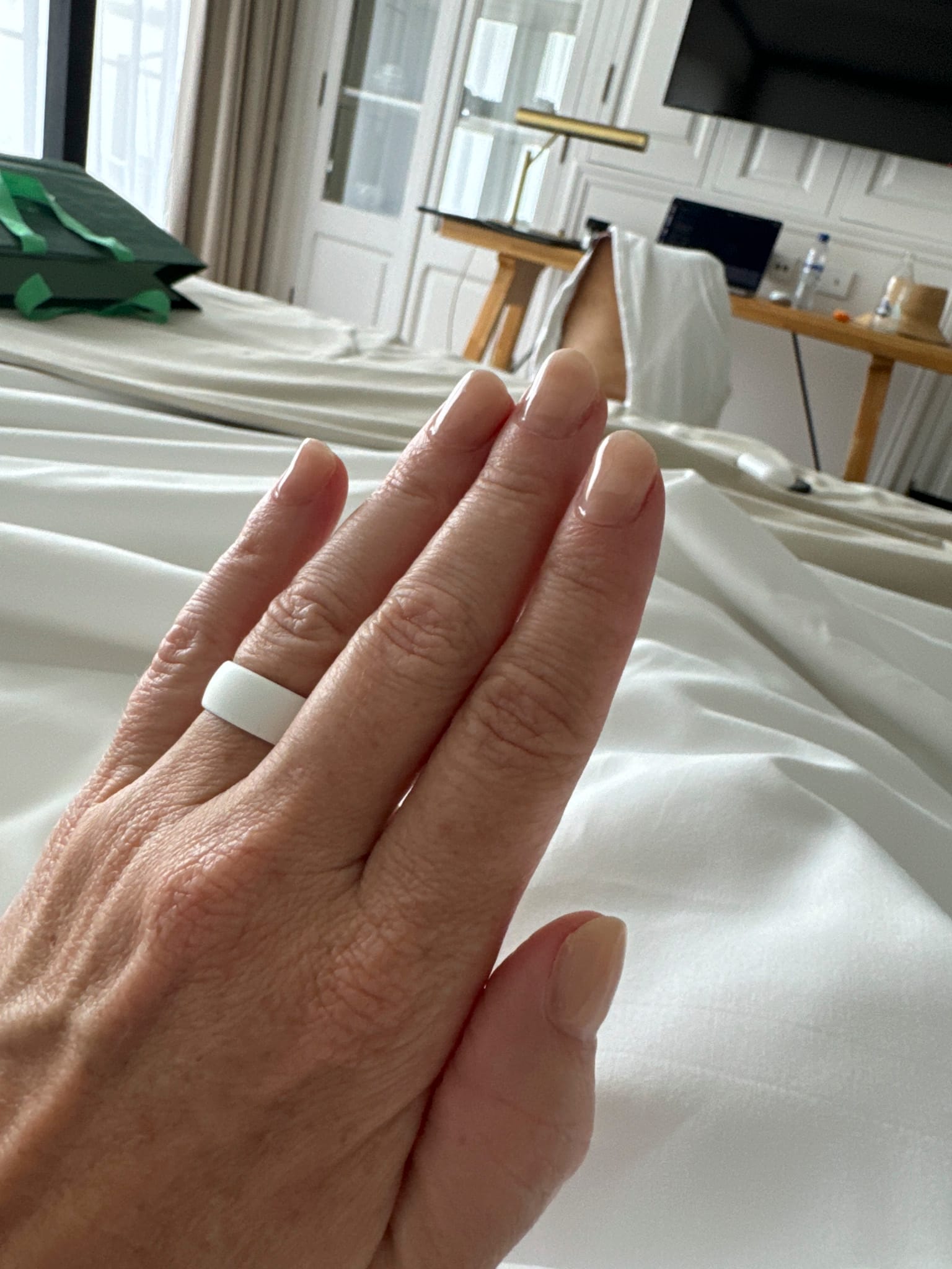 She also worked on her nails.
