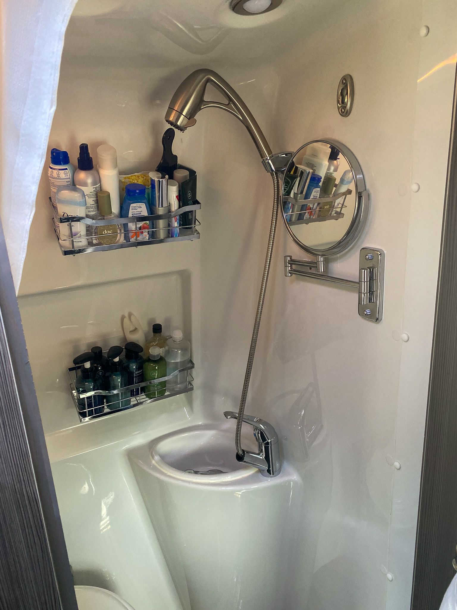 The next day I stopped at a Camping World to purchase a new shower head. The one that came with Baby Malanah had broken. This wasn't a perfect match but it will do the job until we get the original part.