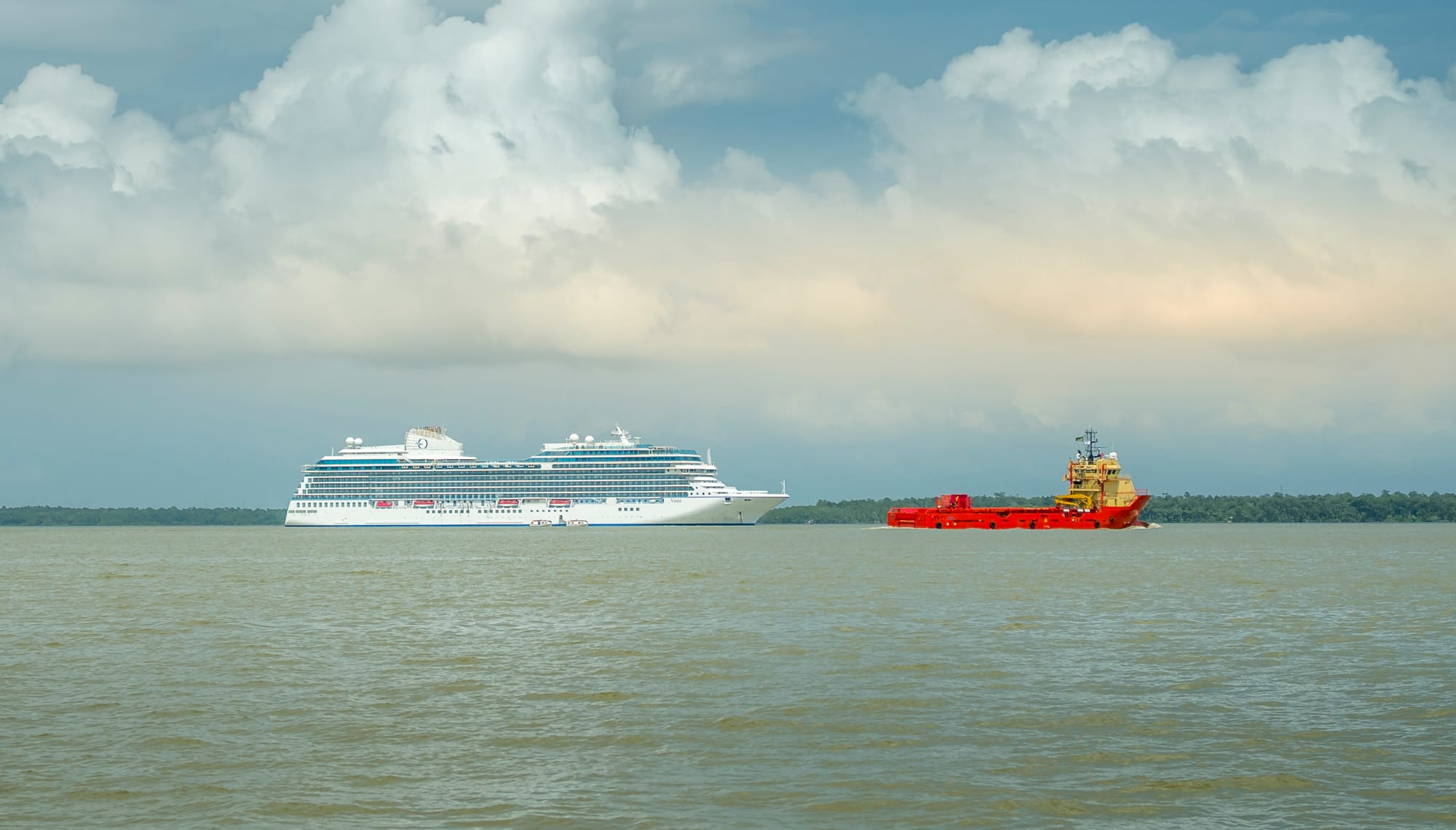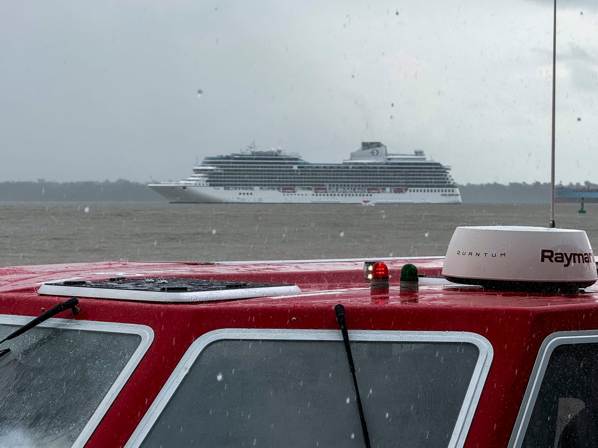 Then on Jan 15 we arrived in Belém, Brasil. Technically it was Icoaraci, about 30 minutes north of Belém. We had a tendering operation and I finally got a nice shot of our ship from a distance. We love this ship. So perfect.
