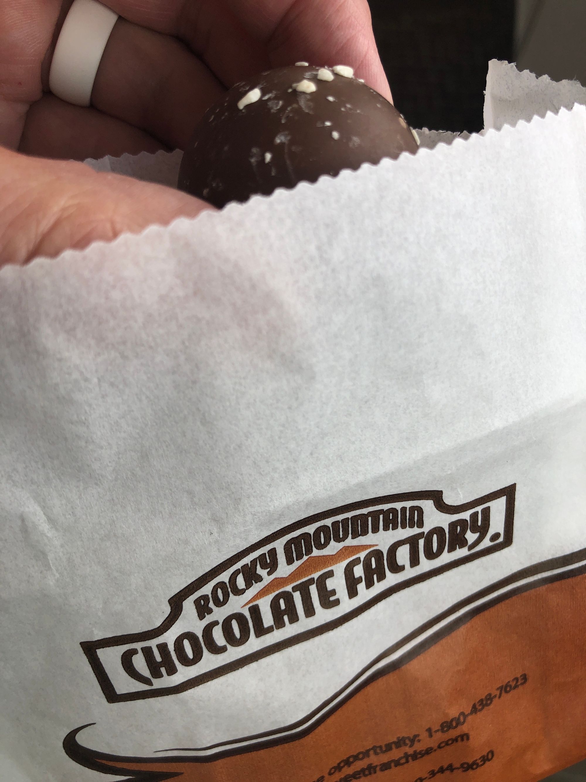 Mitzi has taught me the value of sweets and treats. We've shared caramel apples and truffles from the Rocky Mountain Chocolate Factory in airports on our travels before. So when my Salt Lake City to Houston flight was delayed 2 hours I followed her good example and treated myself -- to a French Vanilla Truffle. I sent her this picture and said it was disgusting. I don't know why but I think she didn't believe me!