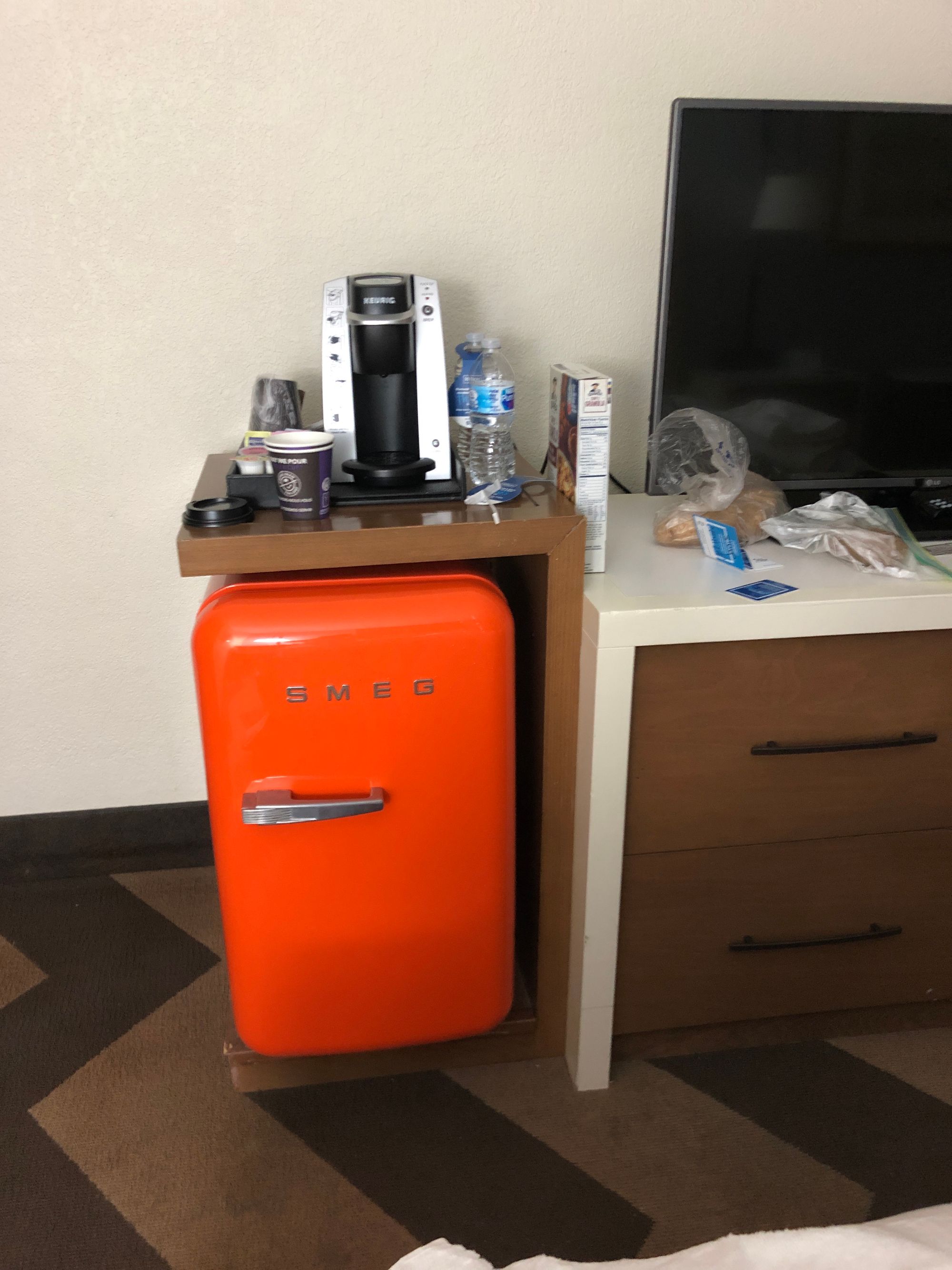 I went up to the room – no box. So I called down. The front desk fellow said sorry, he had it, and would bring it right up. An hour later, no box. So I went to the front desk. No fellow. Back to the room. Call the front desk. Front desk fellow says sorry I got totally swamped. I said no worries, I'll come right down and get the box.