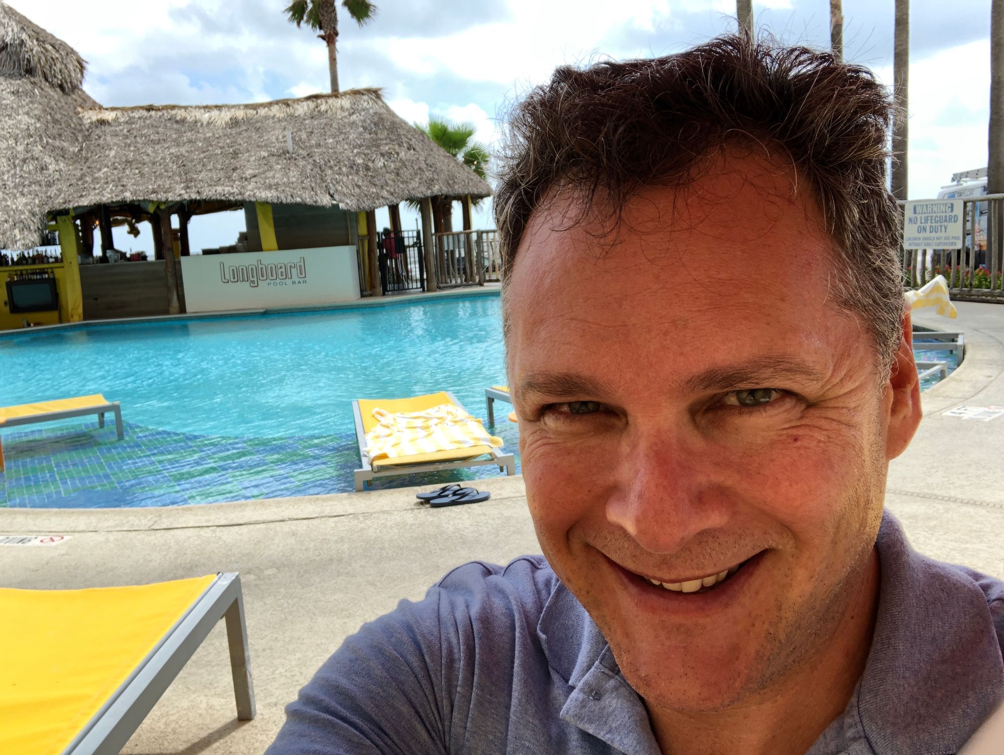 My room has a retro vibe and I really liked the mini-fridge. The brown building is where I shipped the Hasselblad back. I had a nice walk on the beach today. And spent several hours at the pool reading and resting and sleeping a bit. Delightful all!
