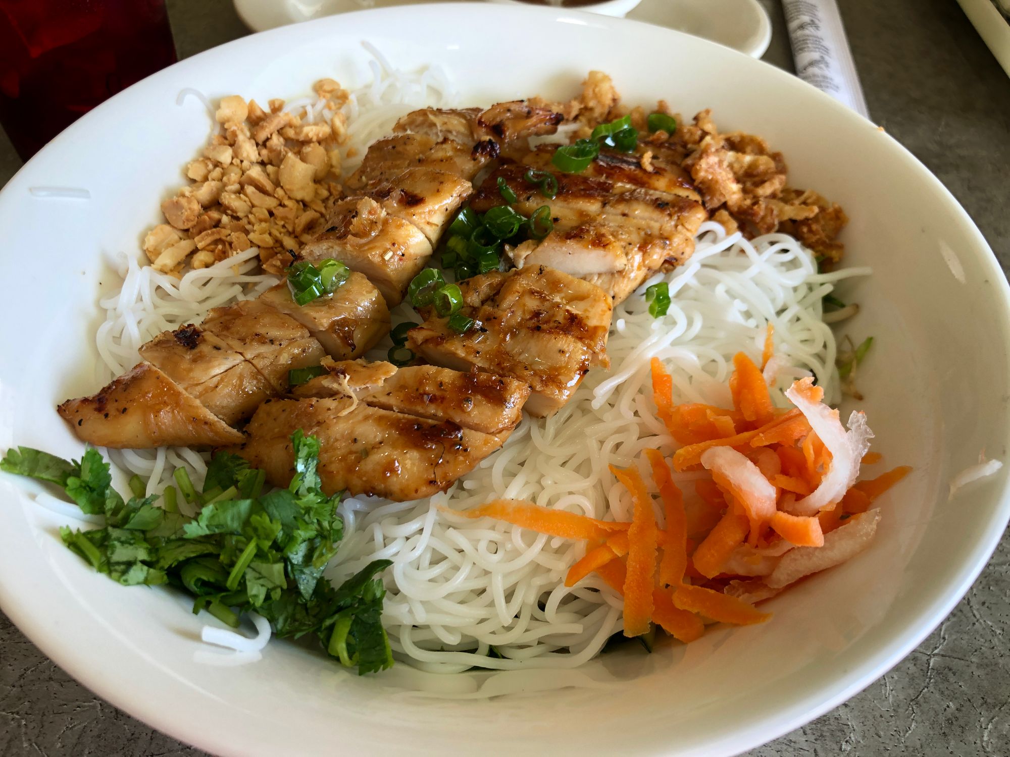 Early dinner was phó (well technically Vermicelli is what I got, not the soup which is actually phó, but the place is called Phó Tài), a food I got to introduce to Mitzi and we love love love it. I tried a new place I'd never been to and while it looks a bit run down on the outside, the service was friendly and the food ... excellent! I'll probably go back today, my last day. Yes it was that good :)