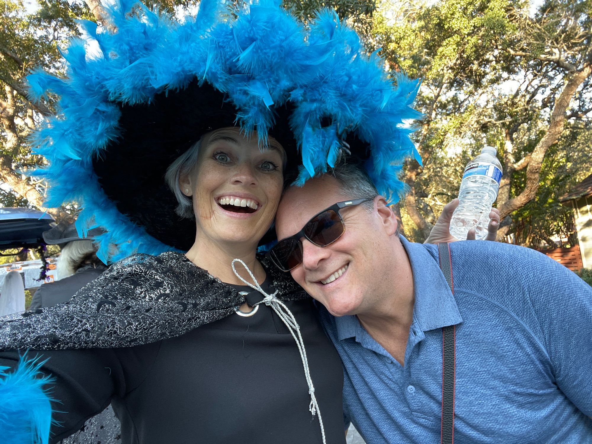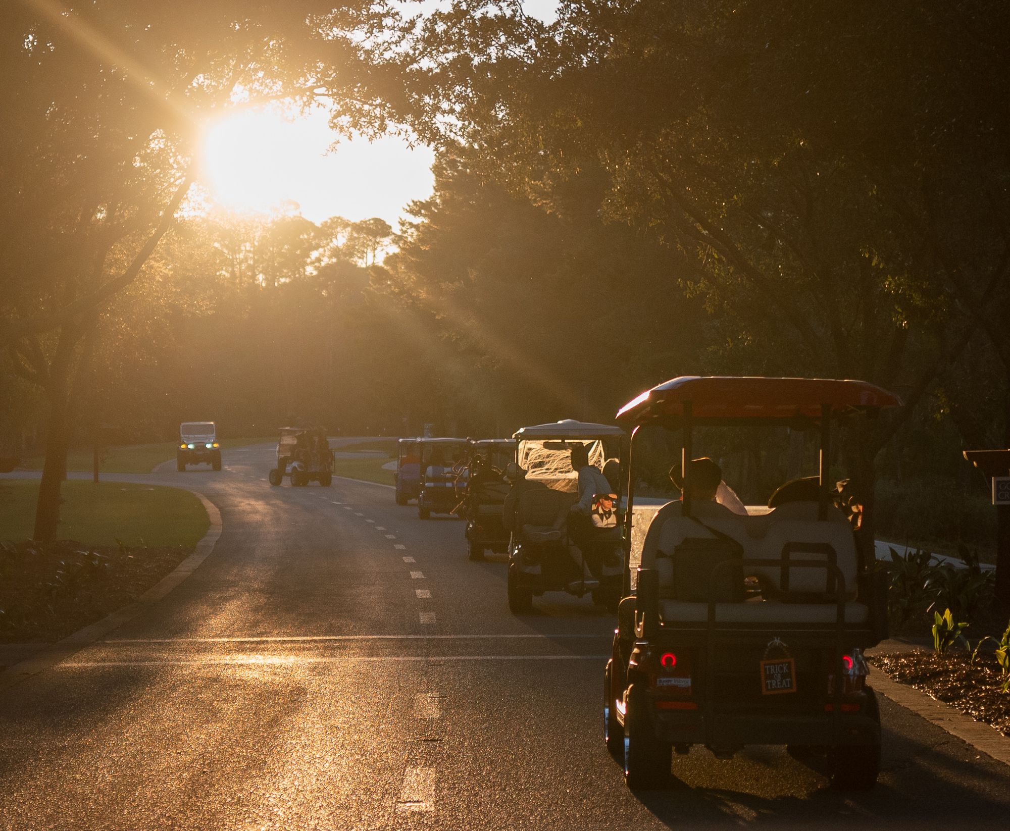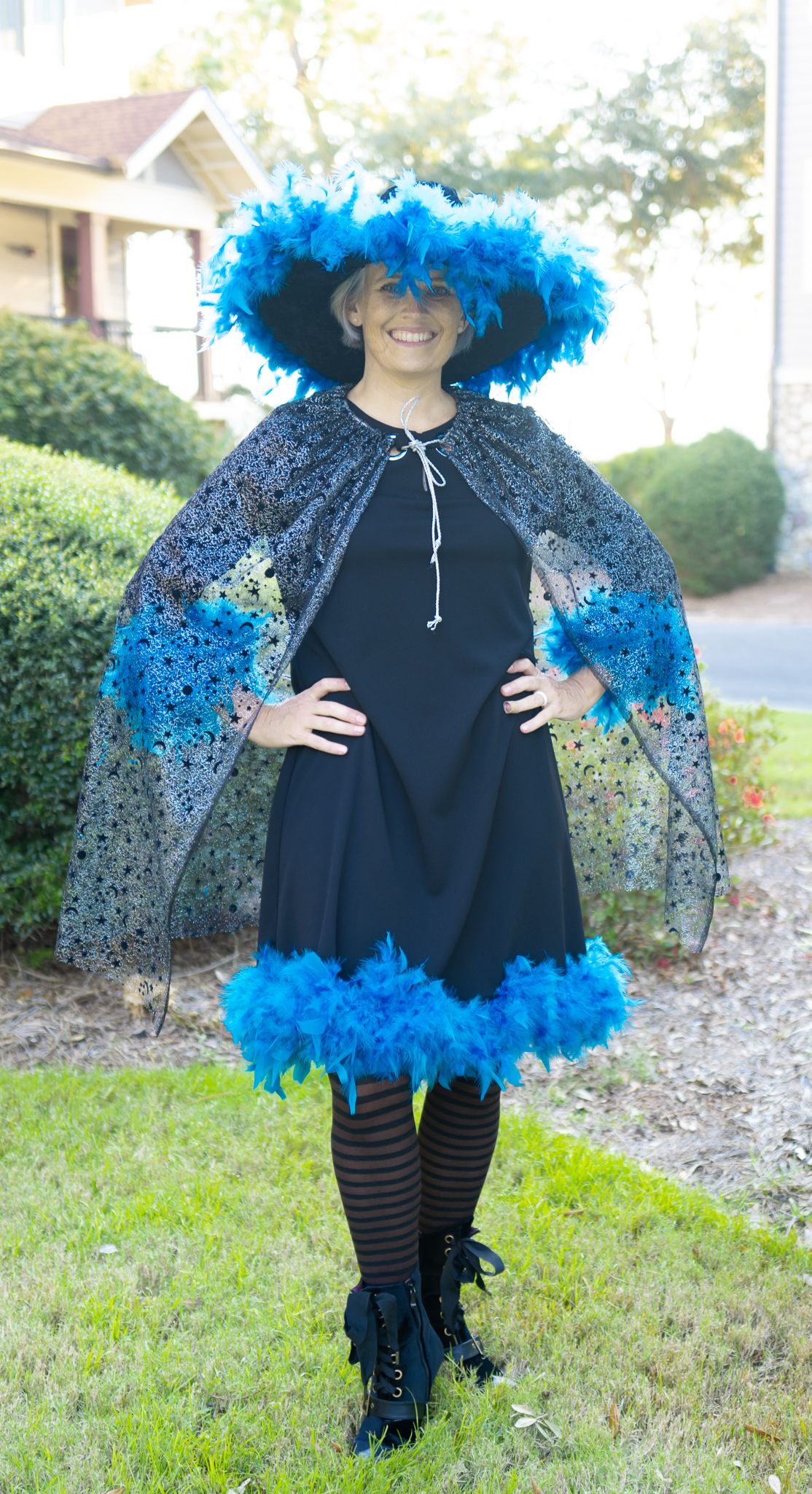 The following day a witch ride was planned through the neighborhood. I was under the impression this was for women and we would all be on bikes. Hahaha..... NOPE! There were plenty of men and most people drove their decorated golf carts! Damon was super kind to come along and take pictures of us :)