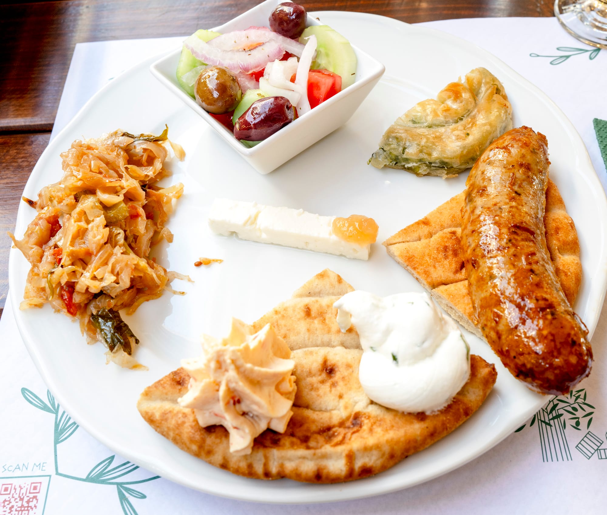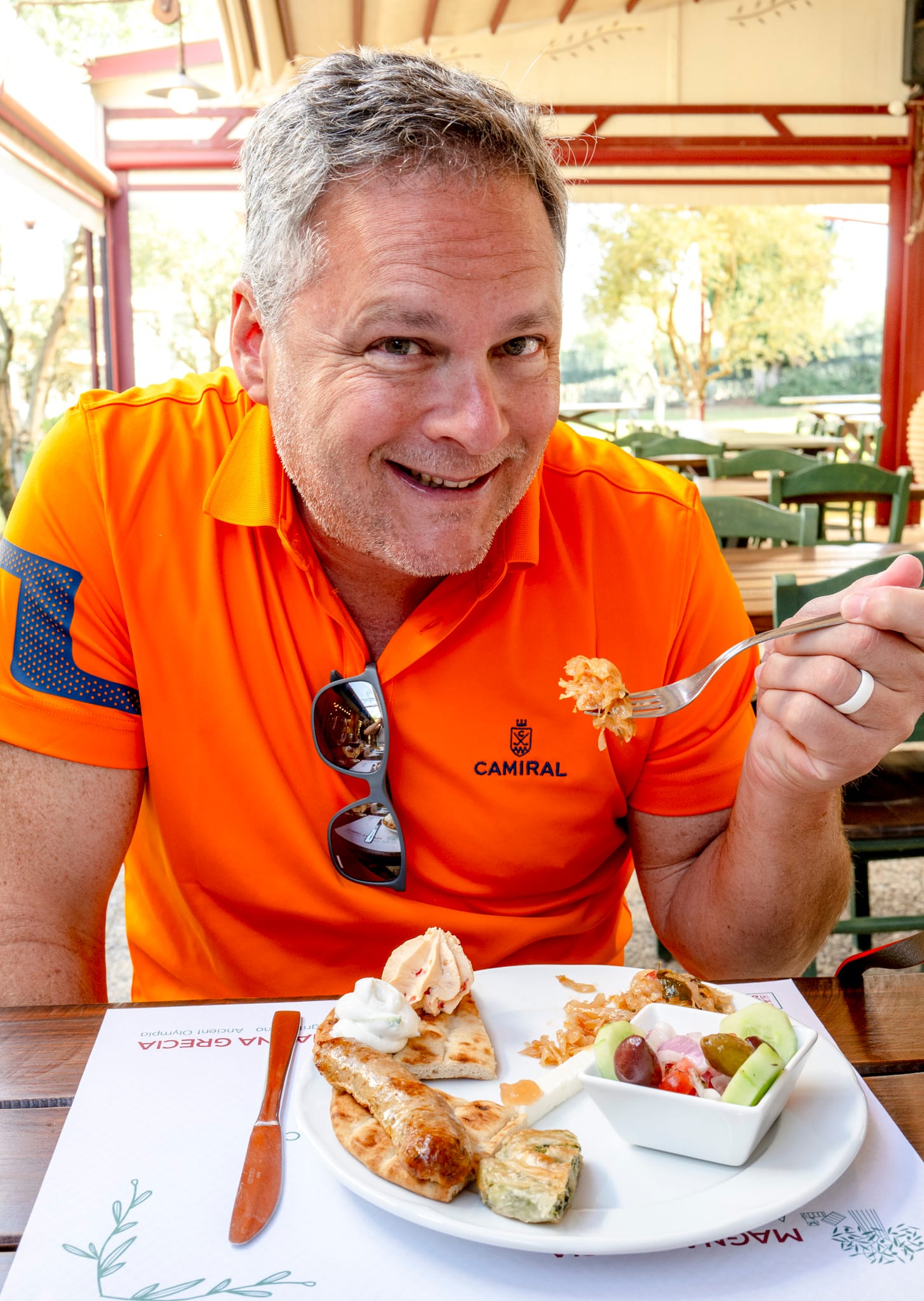 They fed us some local Greek food. Mitzi at the sausage, usually not a fan, and enjoyed it.