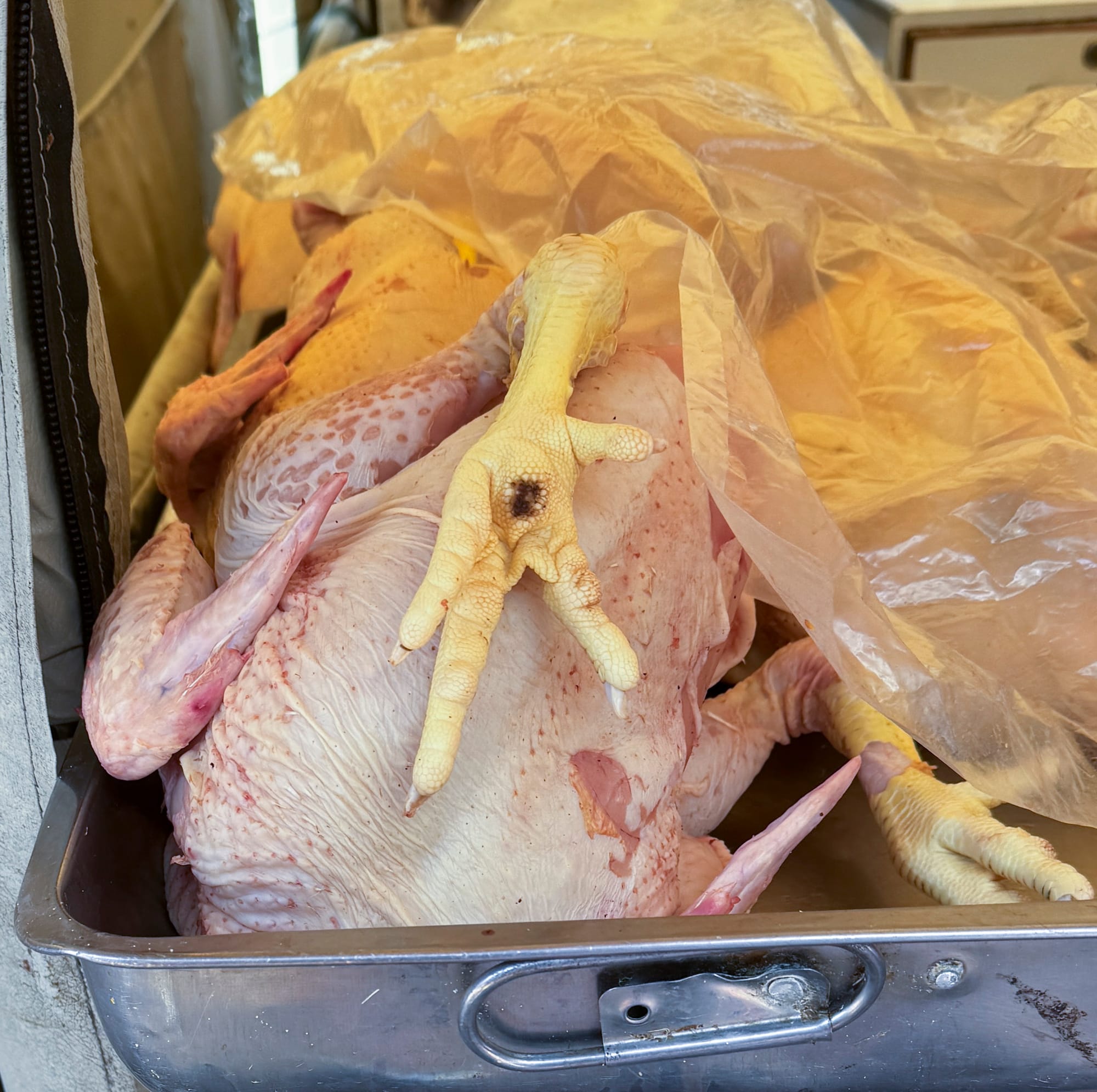 One our way back we passed this outdoor market. Beautiful fresh produce! Beautiful fresh chicken heads and chicken feet!