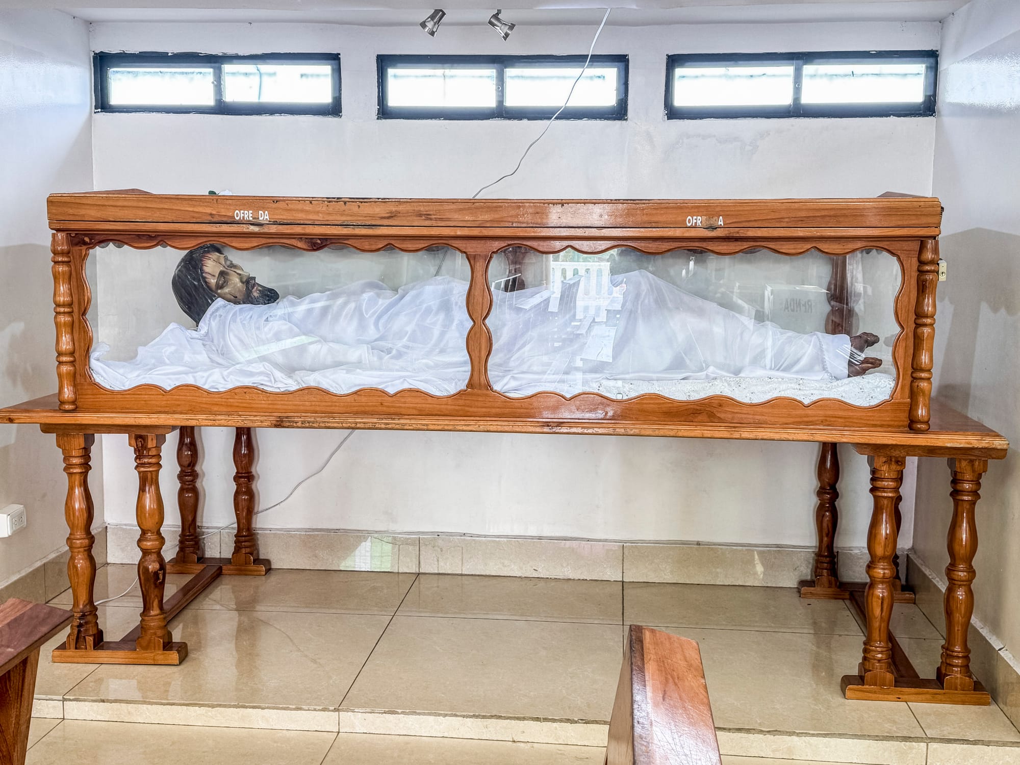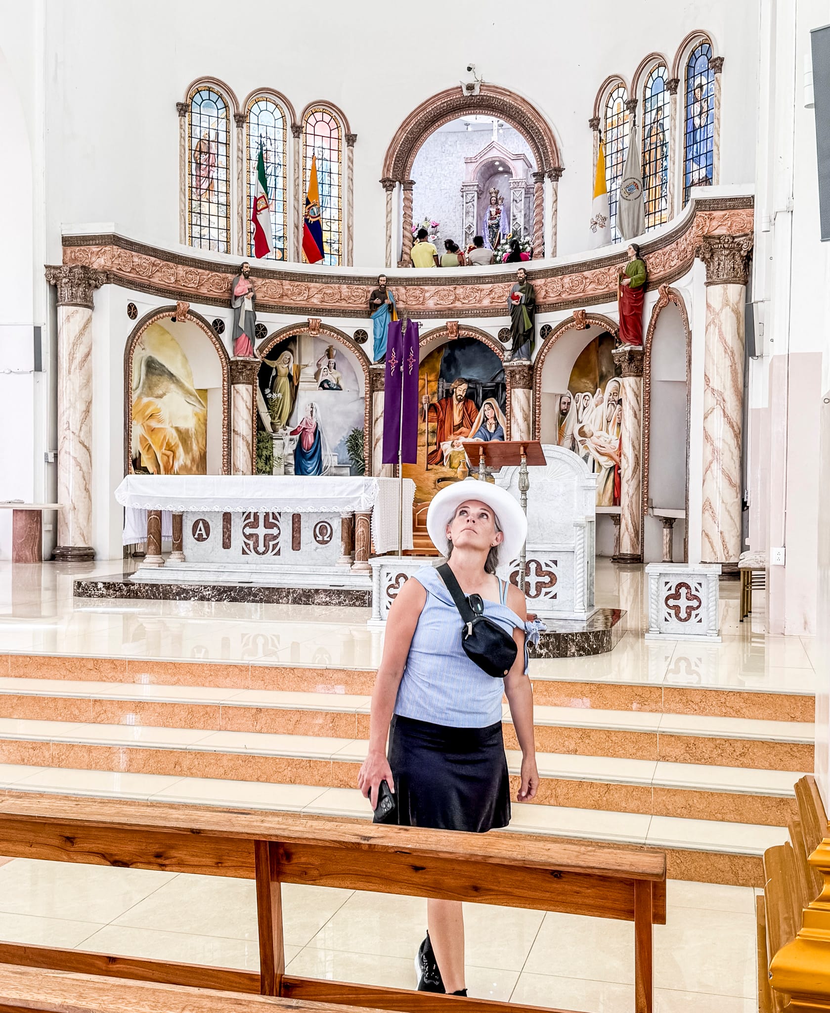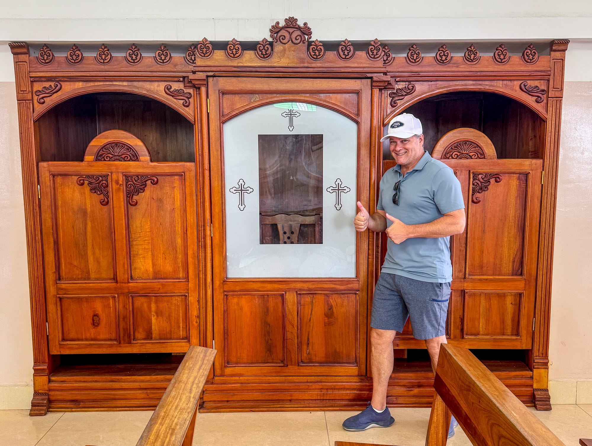 The Uber driver had a backhoe on his dash. There was a big church on the hill in Monticristi, so we had to take a gander. Confessionals! This one had a window where the priest sat, we've never seen that before. Probably helps bad stuff from happening in there. Confess yer sins, sinners! haha