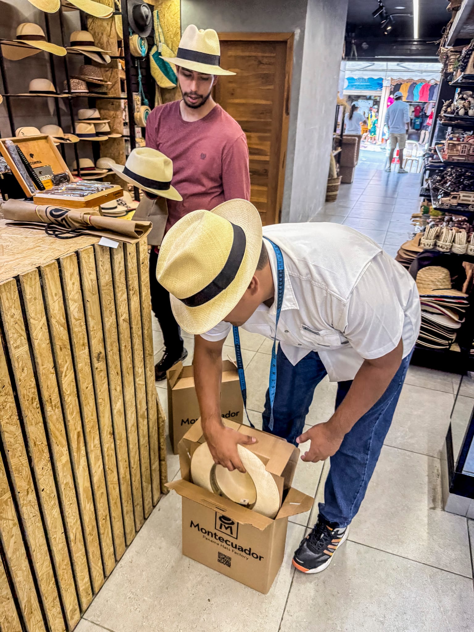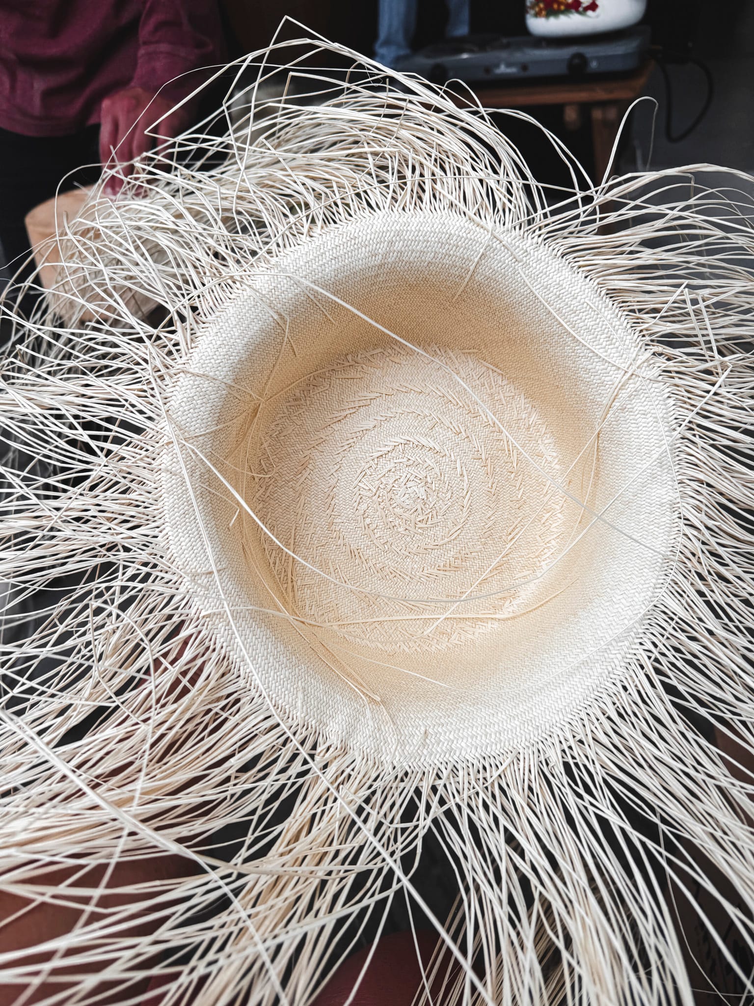 We starting trying them on and before we knew anything about them really, we each bought one. One thing we did learn is the smaller the reed size, the more expensive the hat. They are very beautiful and so well crafted, so light too. We could appreciate the craftsmanship that goes into them.