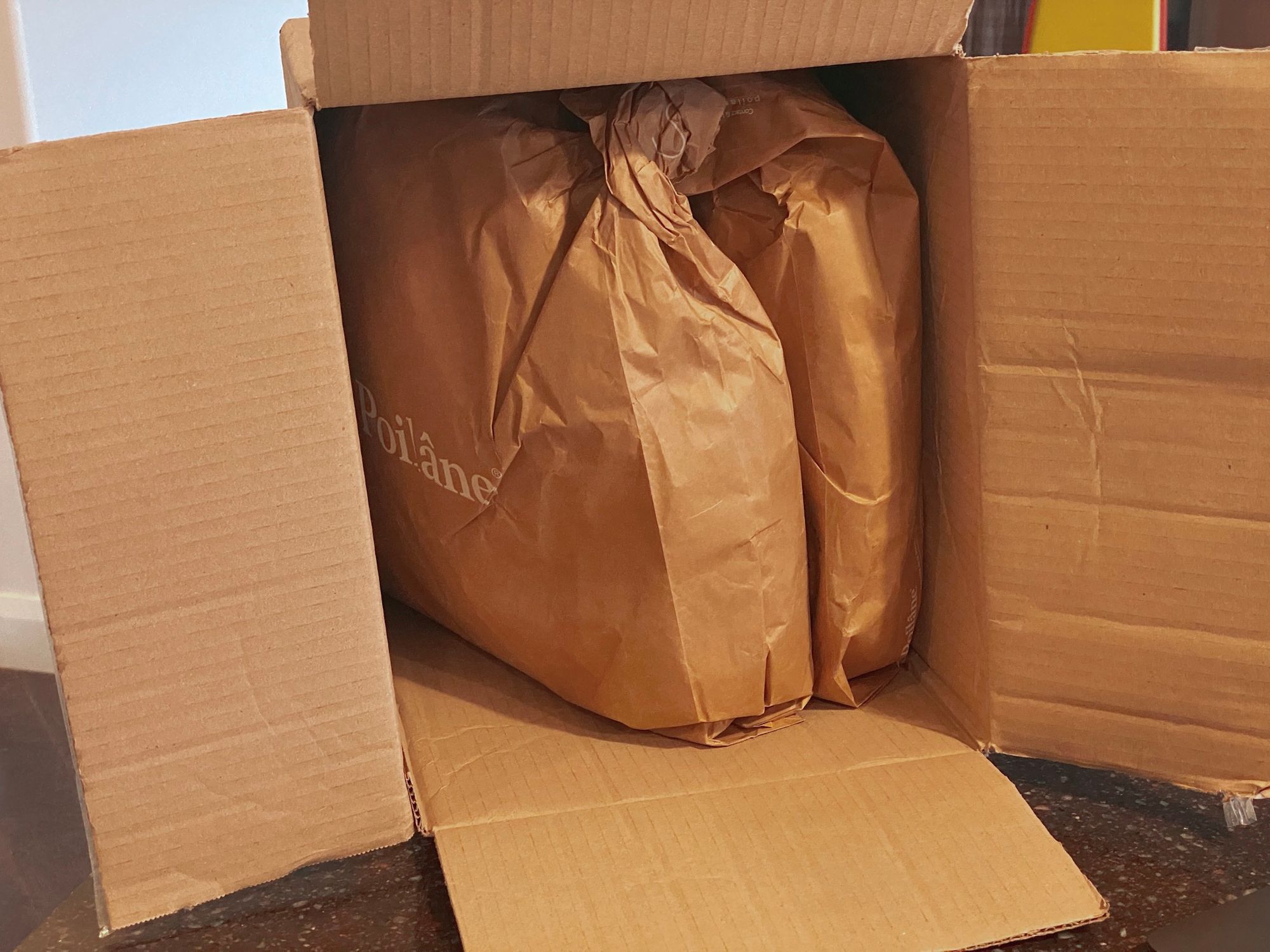 I placed the order on Monday, it was baked Tuesday, and arrived at our house at 12:15p Wednesday. Perfect timing for lunch. It's amazing that we can get a load of bread baked in Paris arriving at our house in 24 hours. What a great time to be alive.