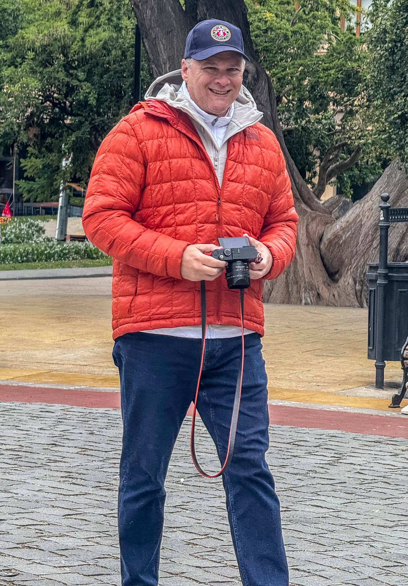 Mitzi getting me taking the photo of the statue. Mitzi got this of real cobblestone streets.