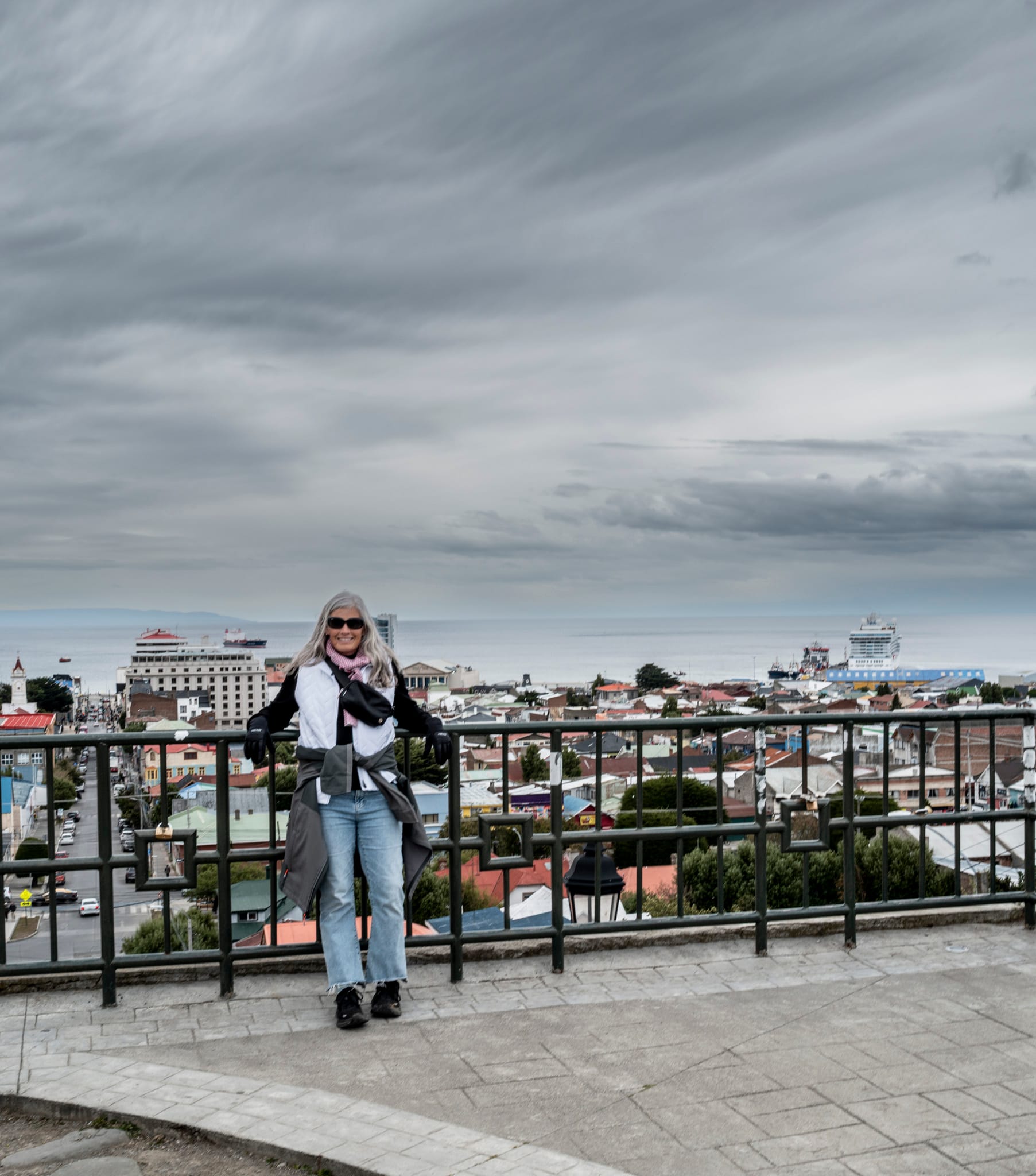 On now for Puntas Arenas. It was a very cold day. We bundled up. The sky was amazing, creating very dramatic photos. This was the natural sky giving us this gift today.