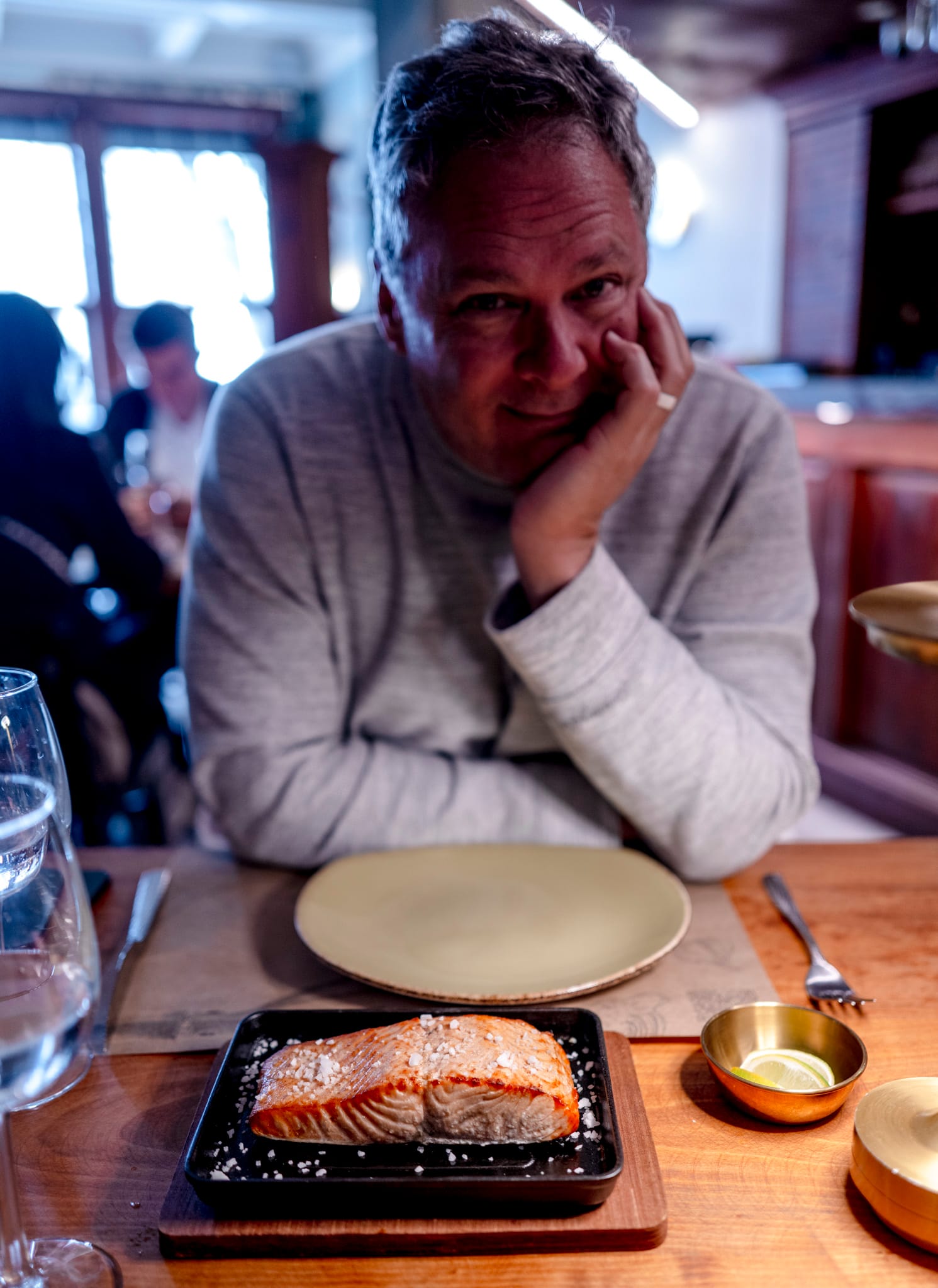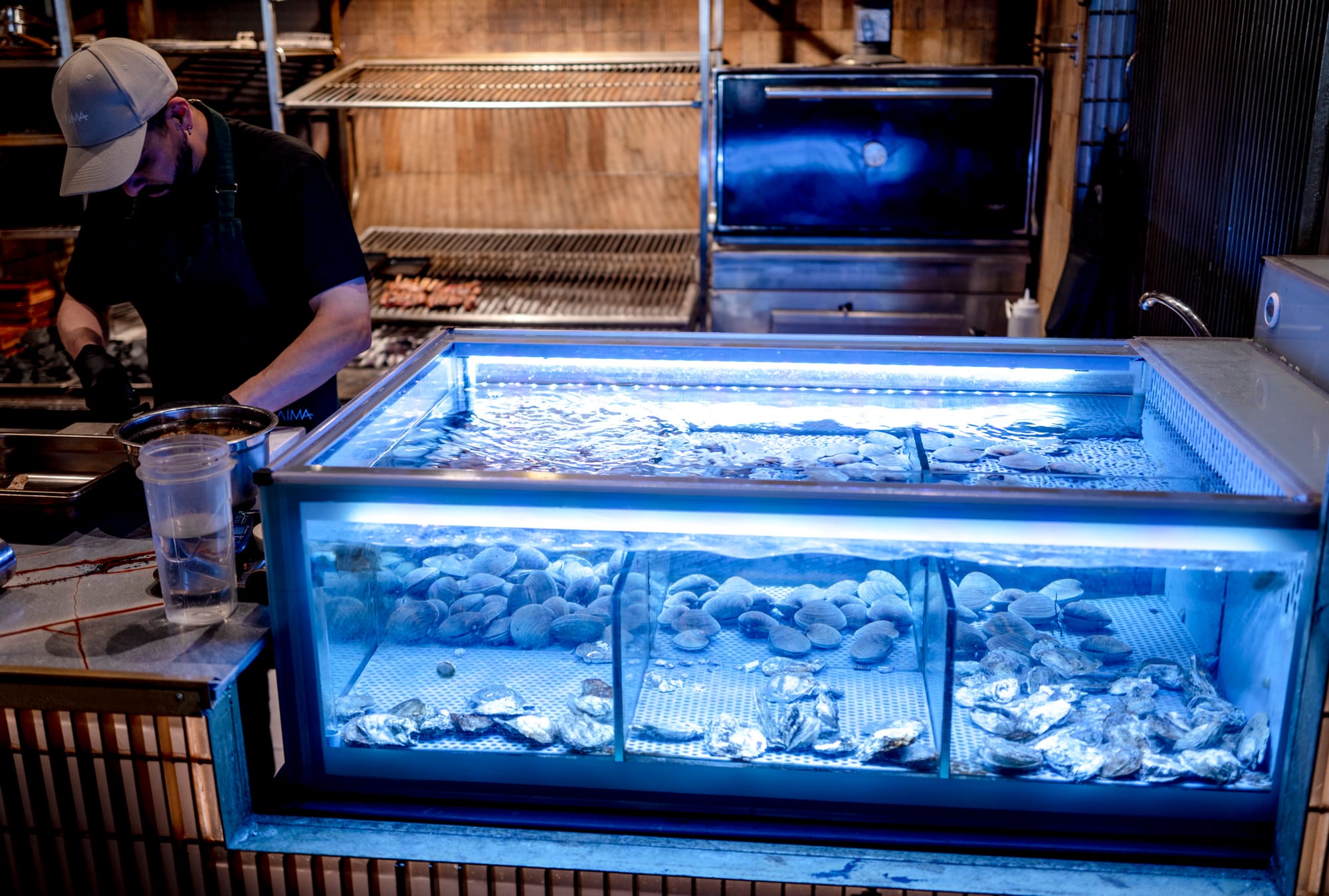 They have plain king crab on their menu but they were out! I was so hungry so we ordered oysters and salmon. They have the oysters live in this tank. And the fellow here is shucking them. He literraly grabbed them out of the tank and shucked them and served them. Amazing! We've never had them this fresh before.