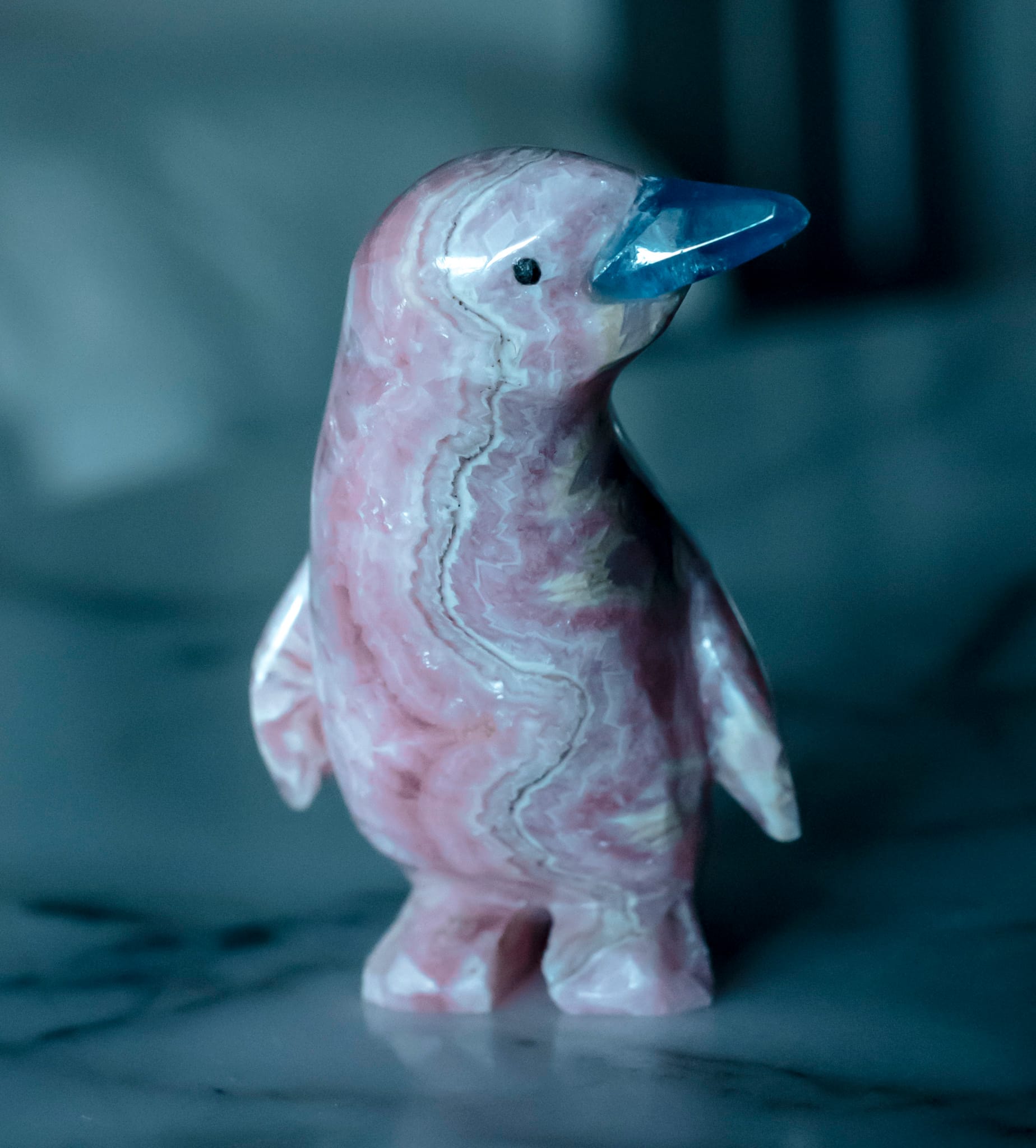 I was thinking maybe $50? Anyway I asked what this smaller one cost. $700. Call me sentimental but I really like the way they carved the stone with the head turned. These are all unique made out of Rhodocrosite, a rare gems only found in Argentina and a small amount in the United States.