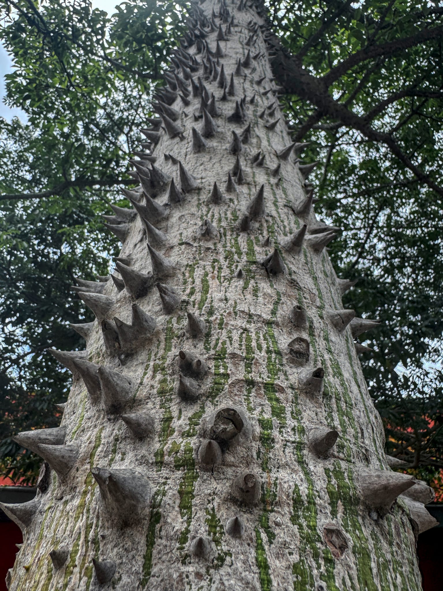 Mitzi spotted this tree with spikes on the trunk. Good for keeping birds off, smart!