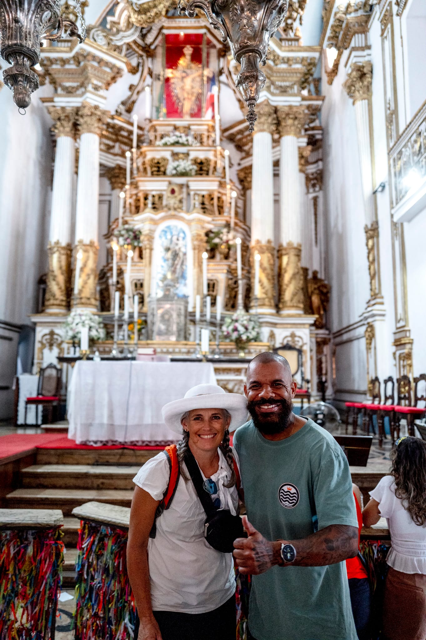 Junior took us to a church Basílica do Senhor do Bonfim. We could see the Portuguese influence in the design. He took us right up to the front for pictures.