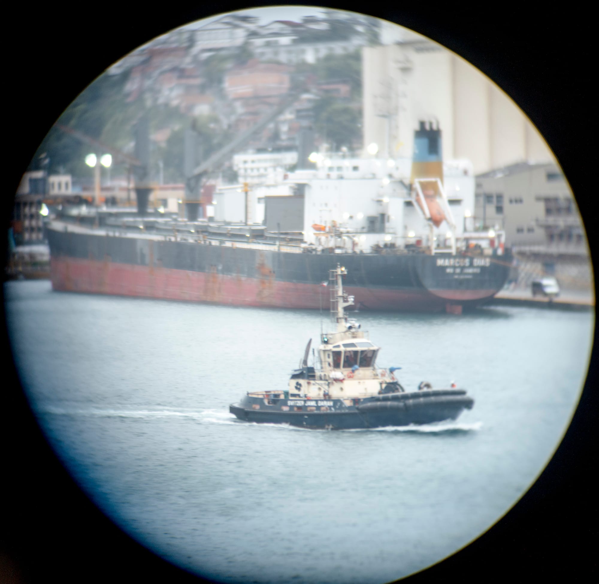 We got back to our ship, the Vista. And as we pulled away from the port in the evening I got some pictures of the ships and Salvador through the binoculars.