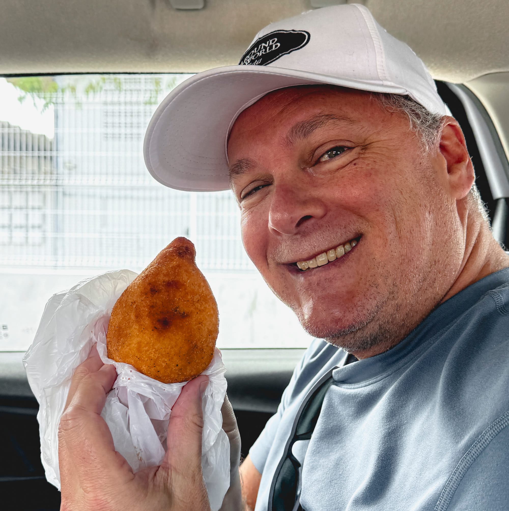 I told Junior I wanted to purchase a Coxinha so if he saw a stand. He did see a stand, stopped the car, told us to wait, he hopped out and a minute later he was back. Best Coxinha ever! Mitzi and I devoured it. We hadn't eaten all day and it tasted so great. I love these things. I'm really happy that Mitzi enjoys them too! Imagine Mitzi eating Brazilian street food 😃