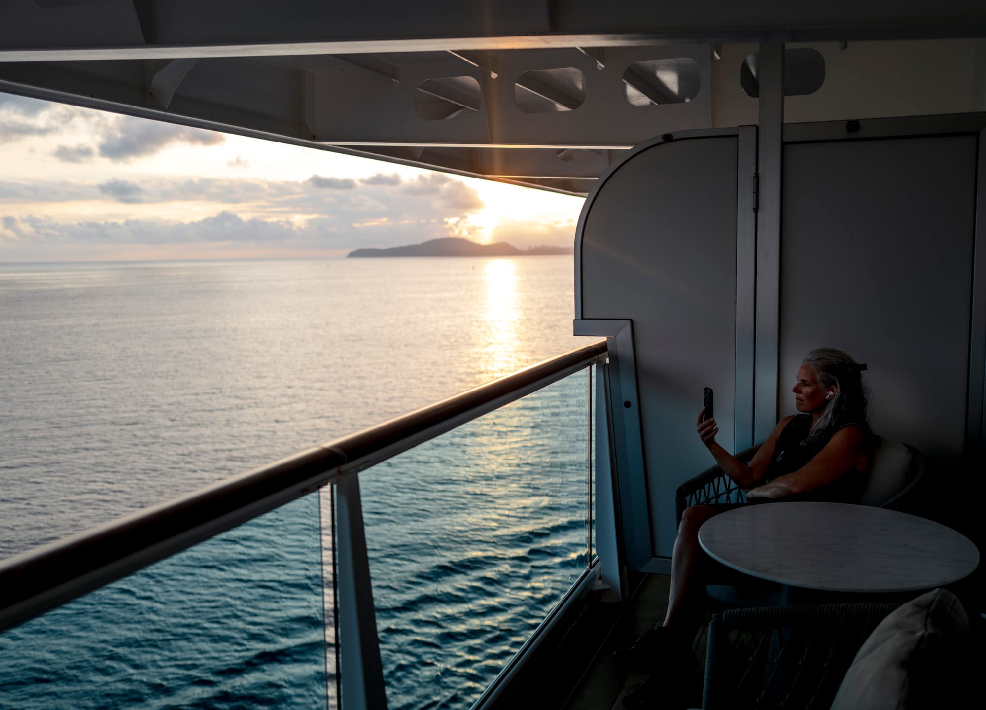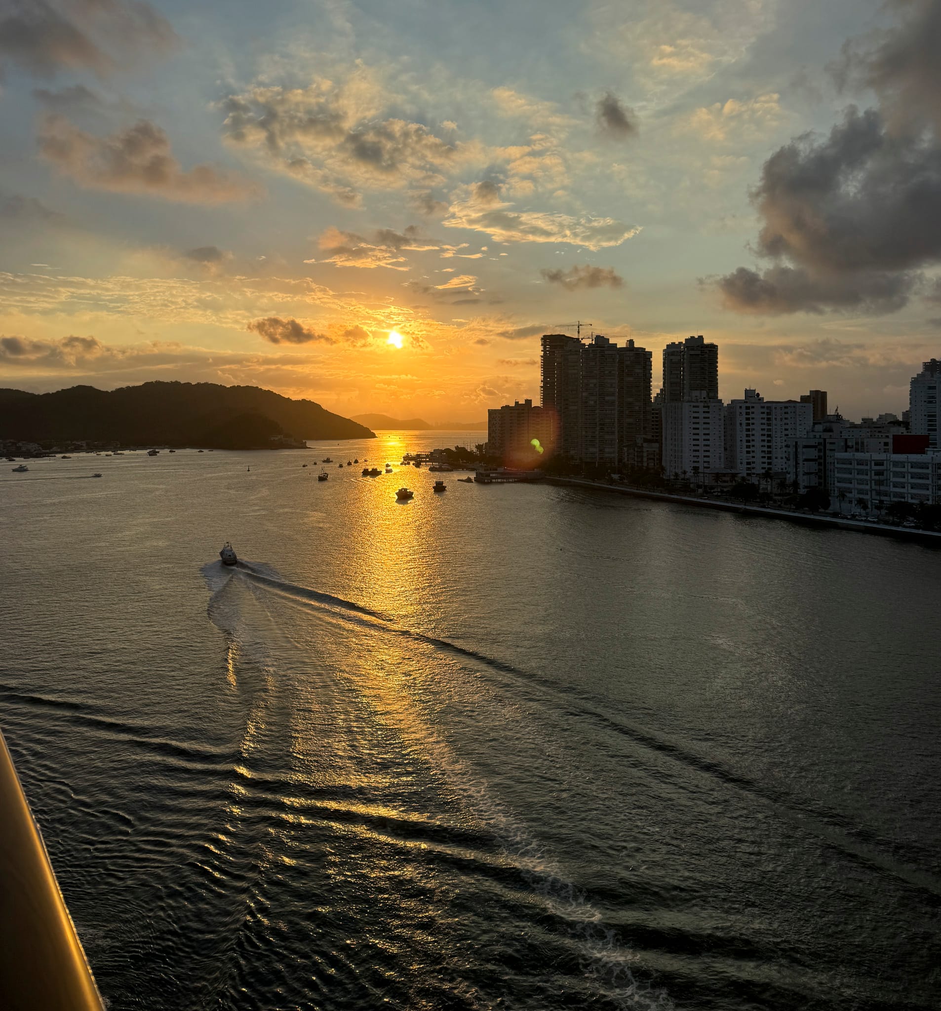 It was a beautiful sunset as we pulled out of the port in the evening. Mitzi was on facetime with Benson as we sailed out.
