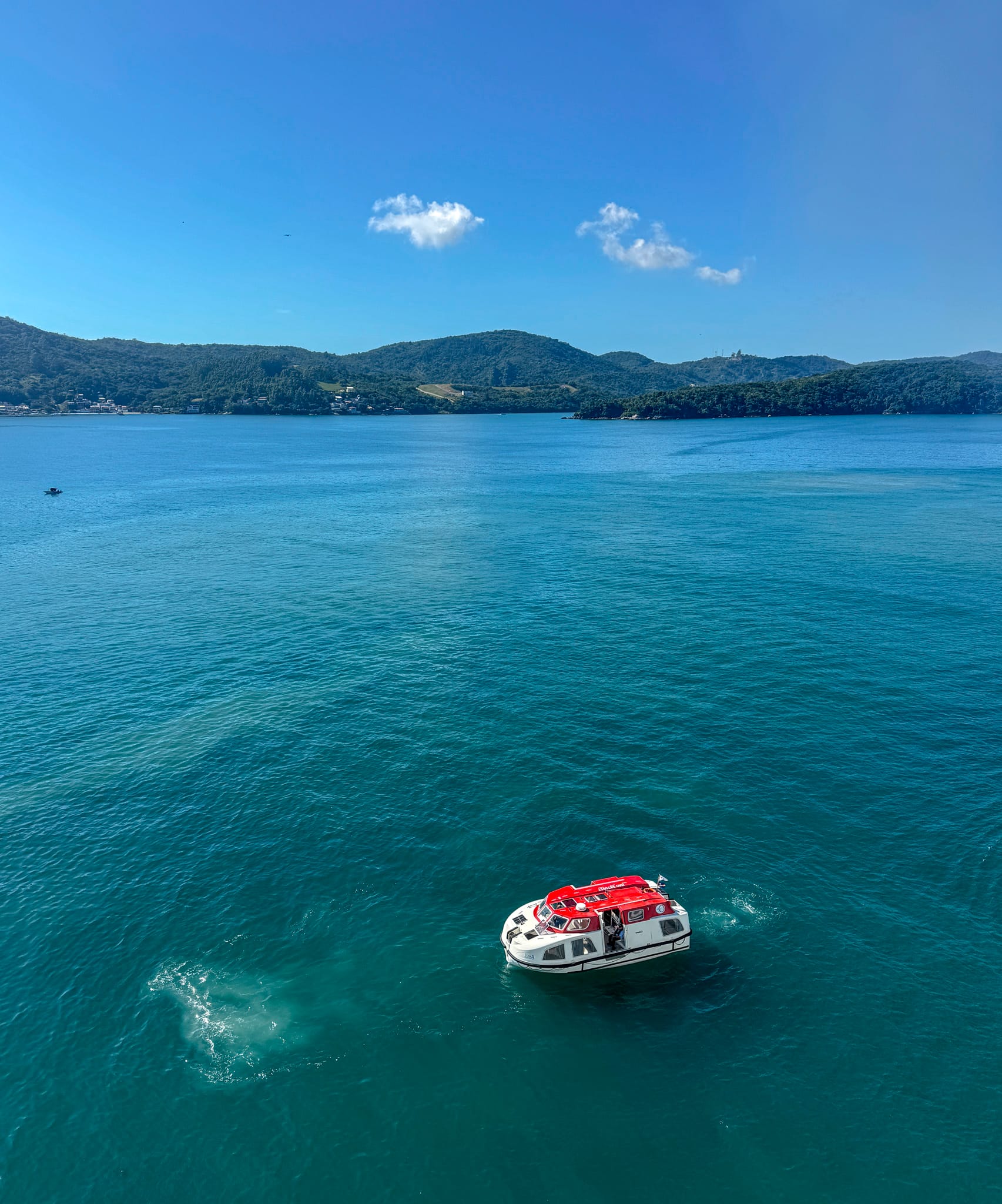 Today we tendered in Porto Belo, Brasil. That was the longest tender I think we've ever done. It probably took 20 minutes to get to shore.