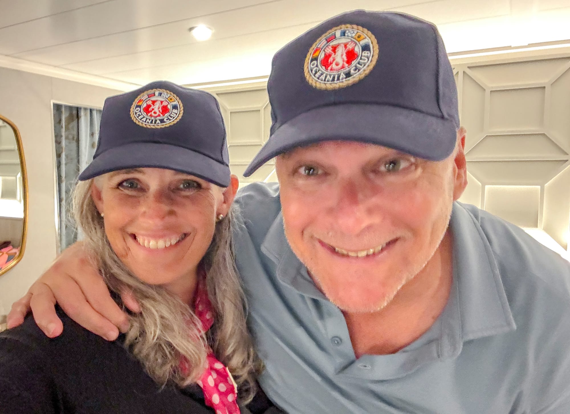 When our room got cleaned this evening we had our Oceania Club hats on the bed. We've earned Gold status! We really do love Oceania, it's perfect in every way.