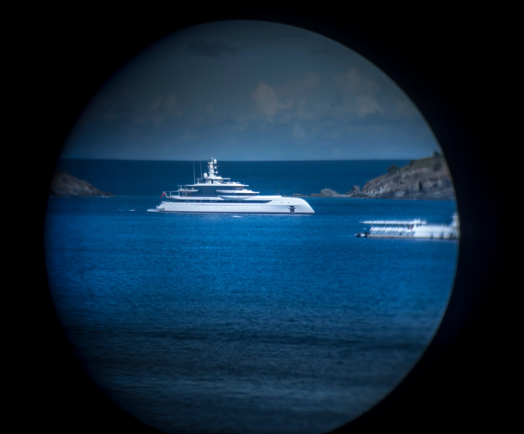We sailed for 2 full days then arrived in Gustavia, St. Barts in the morning of Jan 9. I brought my marine binoculars and was able to get a better view of an amazing yacht anchored across the bay.